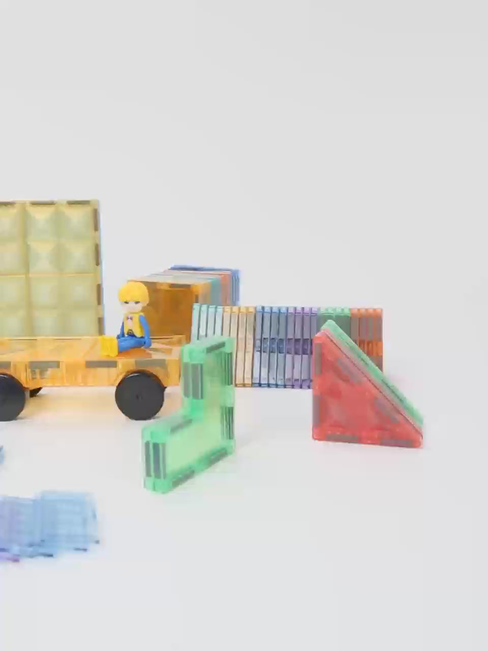 100 magnetic pieces to design towers, houses, unlimited imagination!