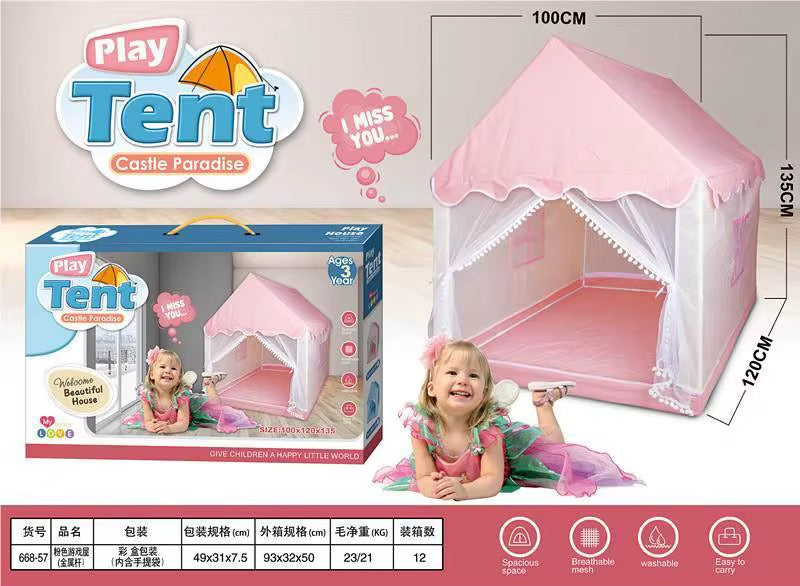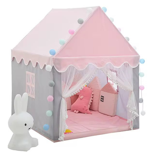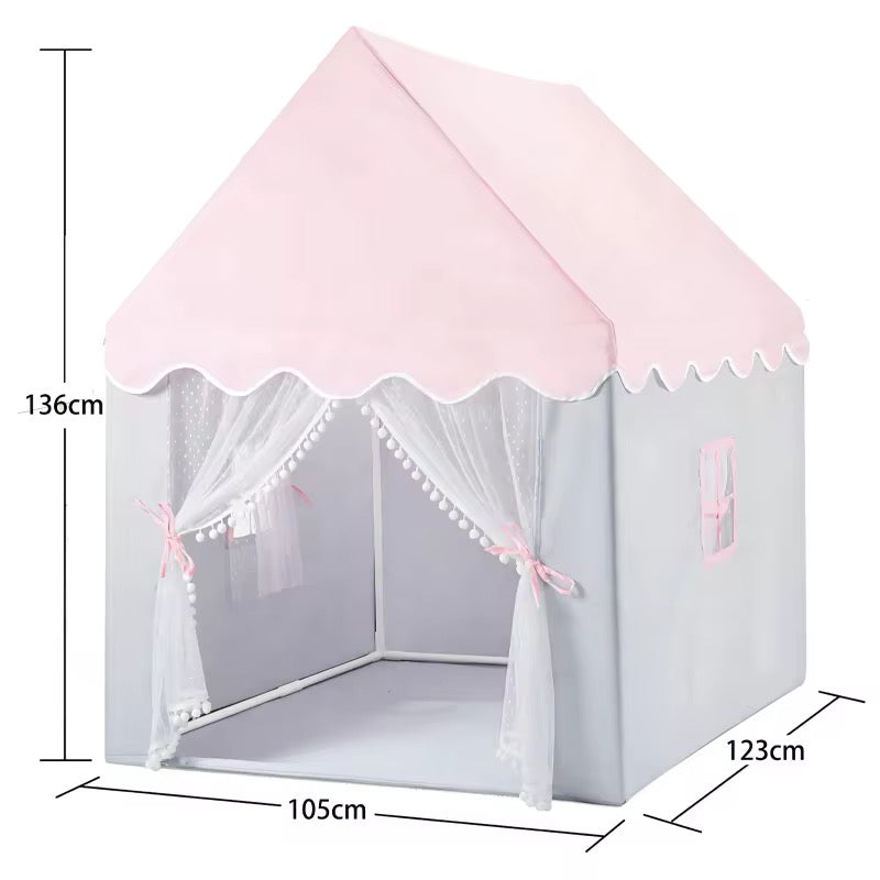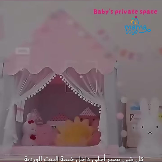 خيمة لعب واسعة ومريحة بتصميم يشبه بيت صغير، تعطي الطفل مساحة خاصة للّعب، القراءة، والتخيّل. خامة قوية وألوان (بدون إضاءة) ناعمة تجعلها مناسبة لغرفة النوم أو غرفة الألعاب
