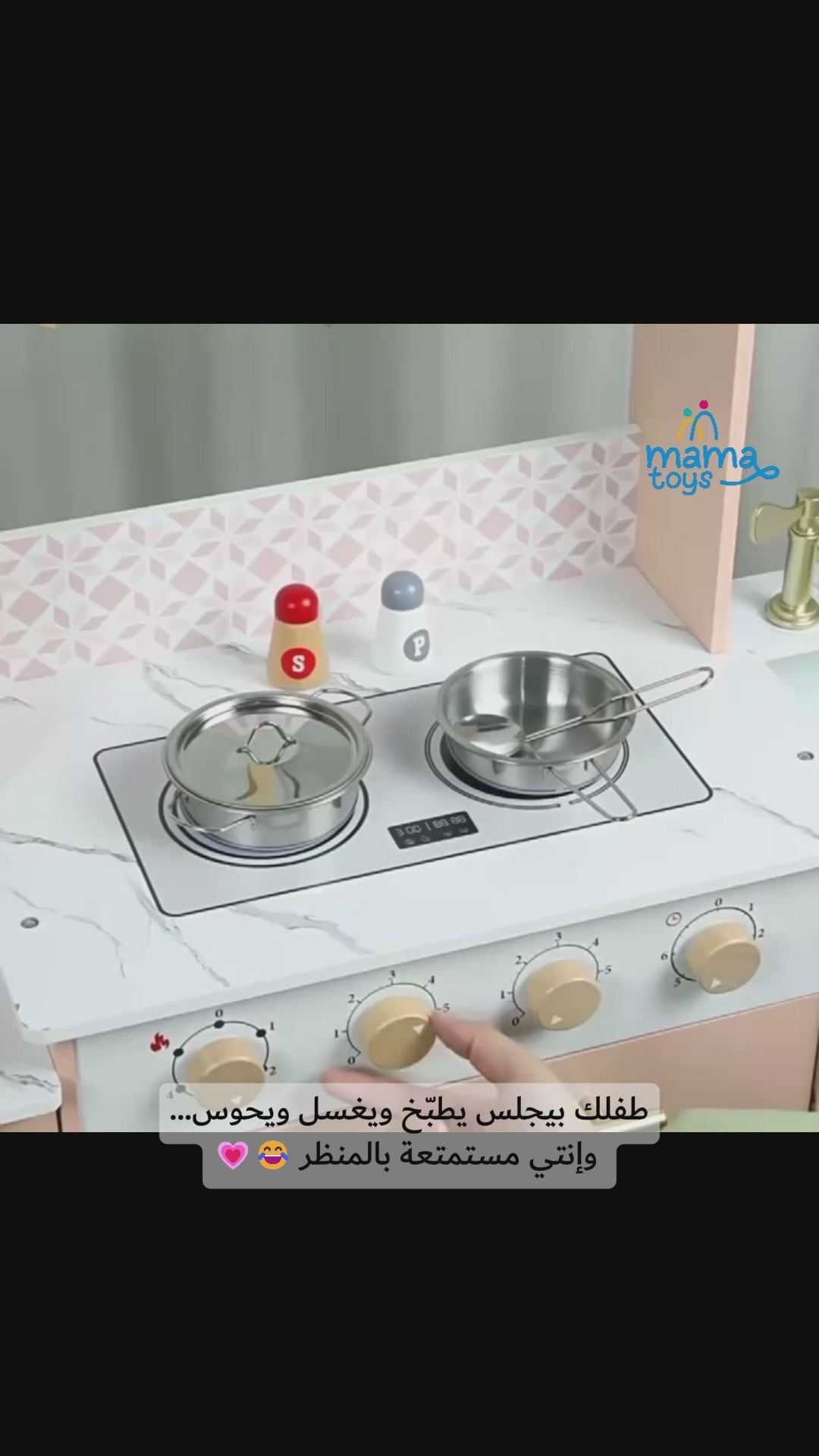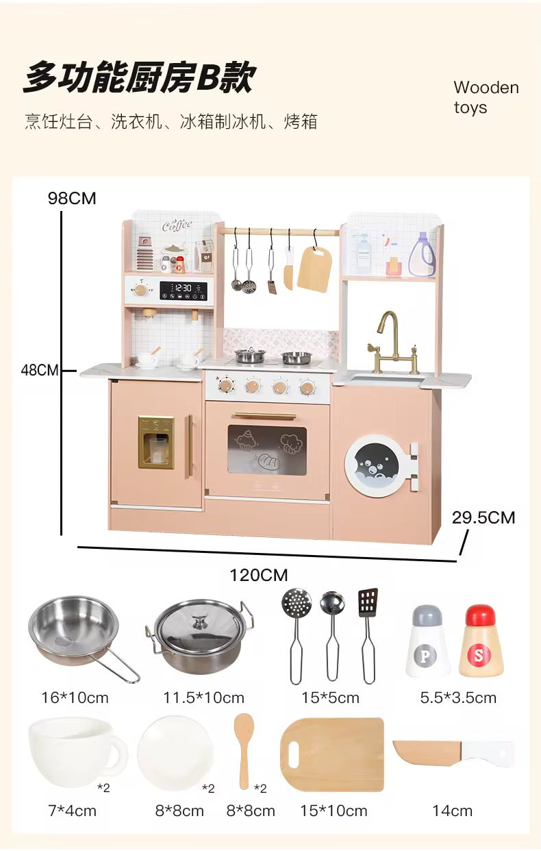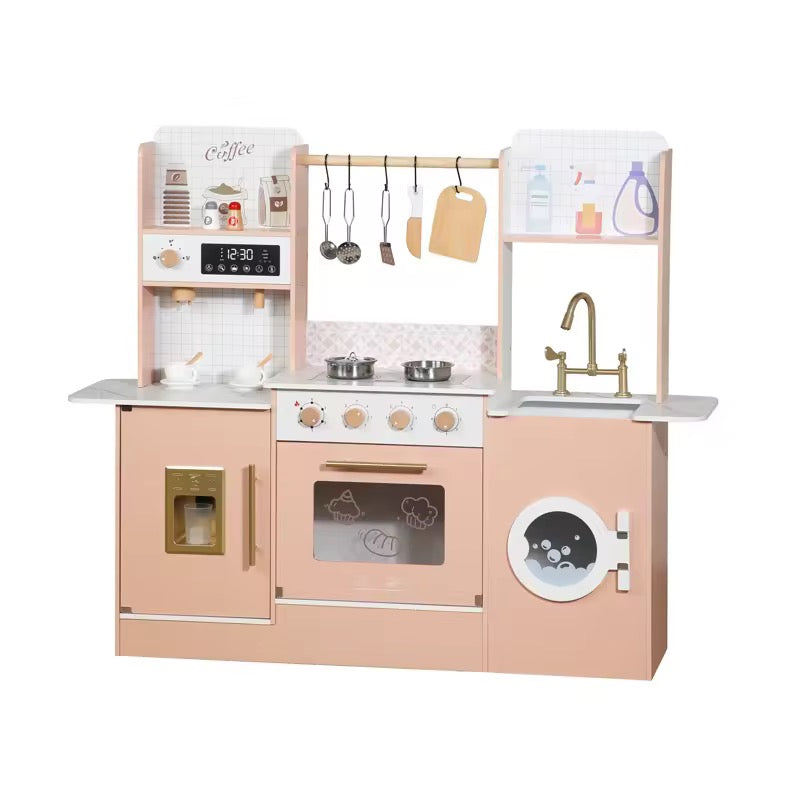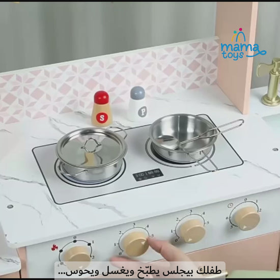 مطبخ لعب ضخم وناعم جدًا، فيه كل التفاصيل اللي تحسس الطفل إنه في مطبخ حقيقي بس بحجمه!