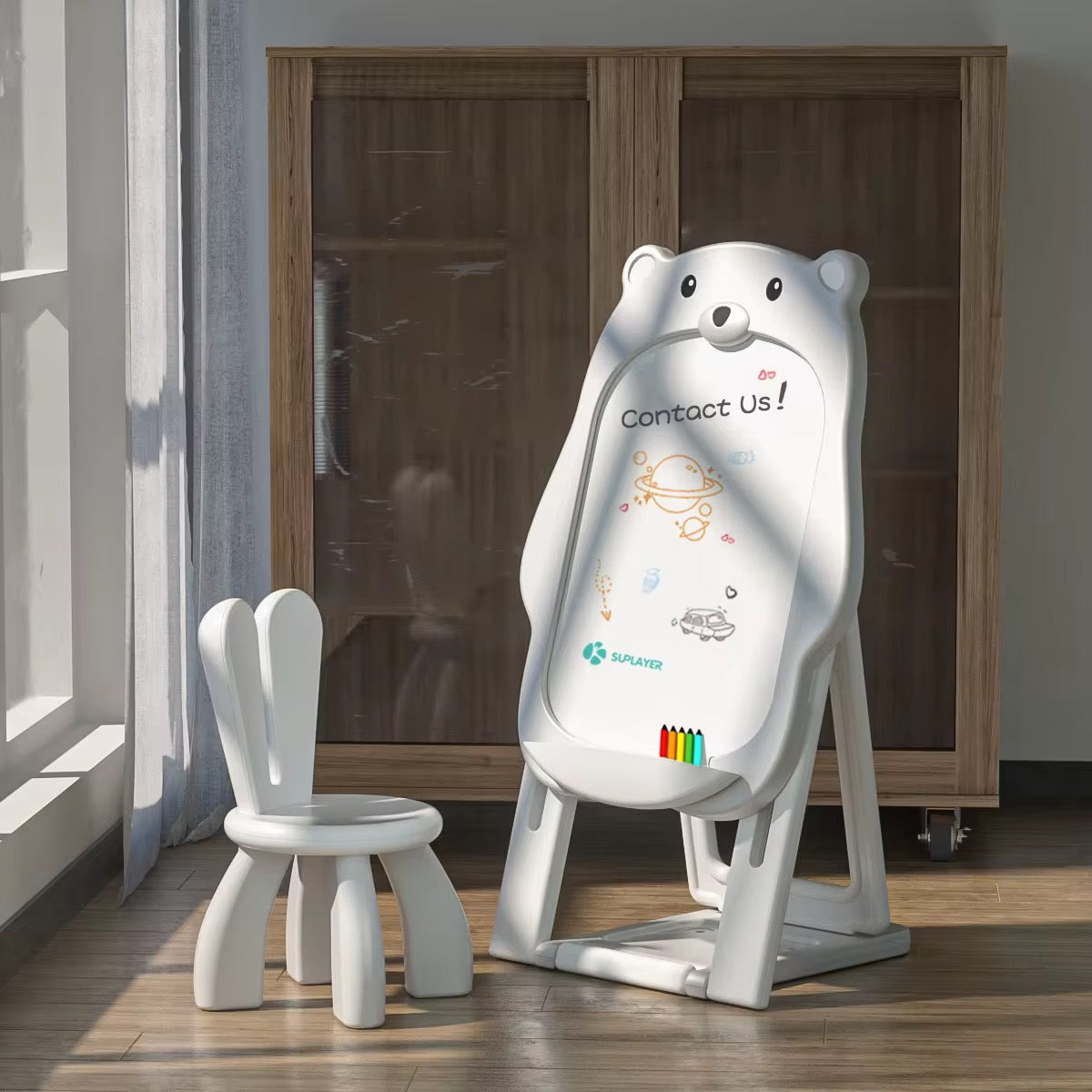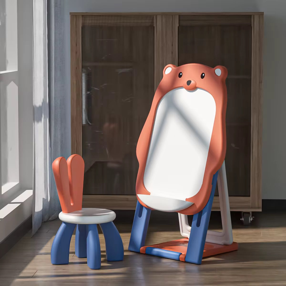 سبورة رسم مع كرسي جميلة بتصميم دب كيوت، تجذب الطفل وتخليه يعيش جوّ الفن. (بدون أرفف)