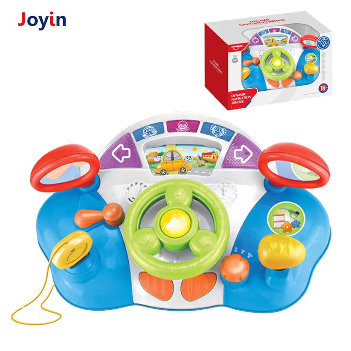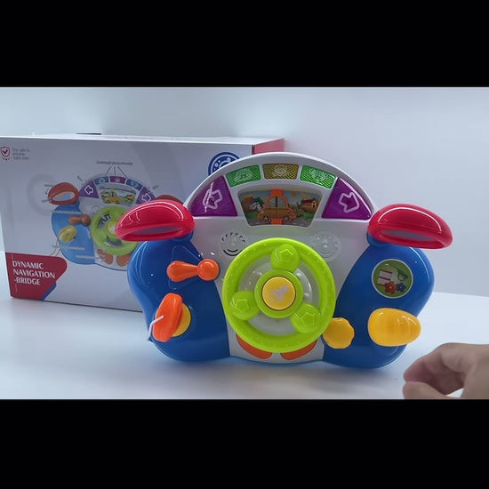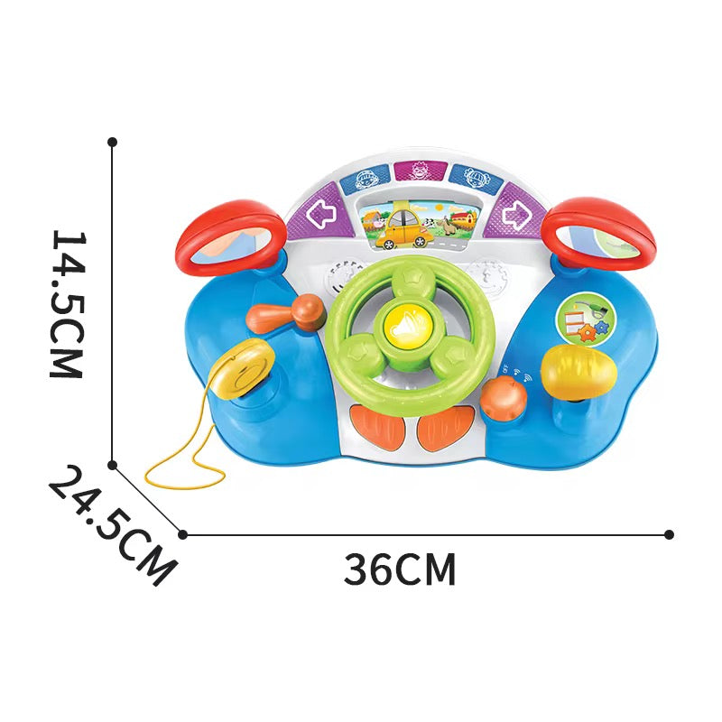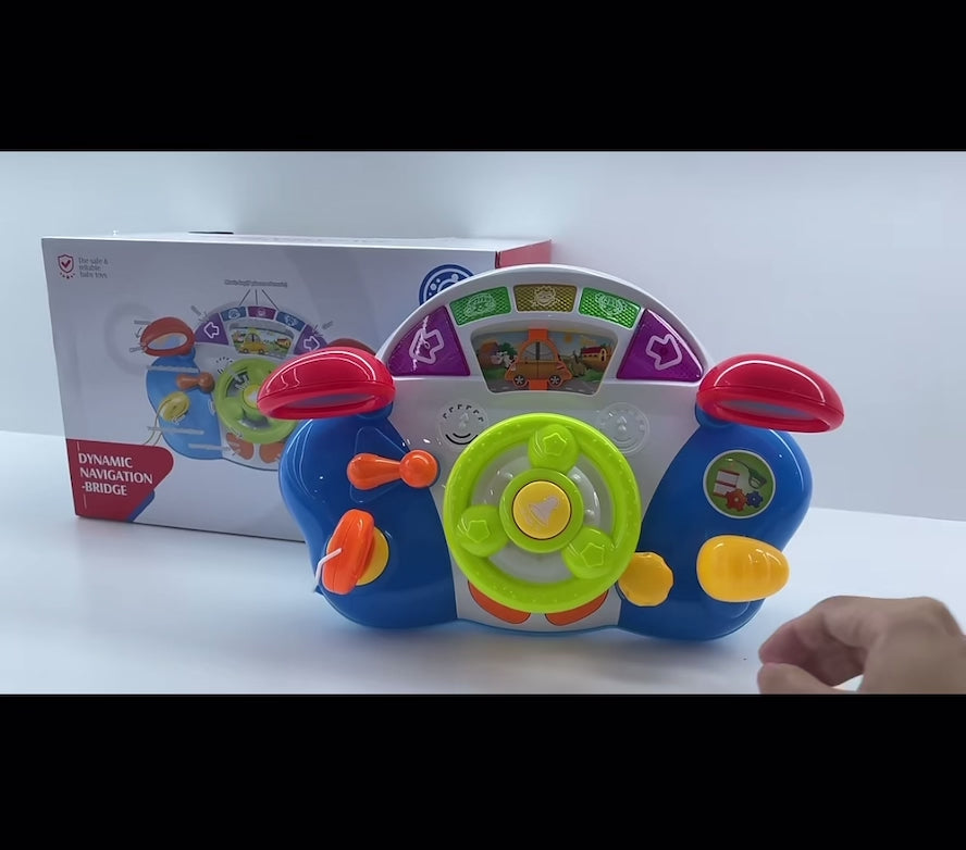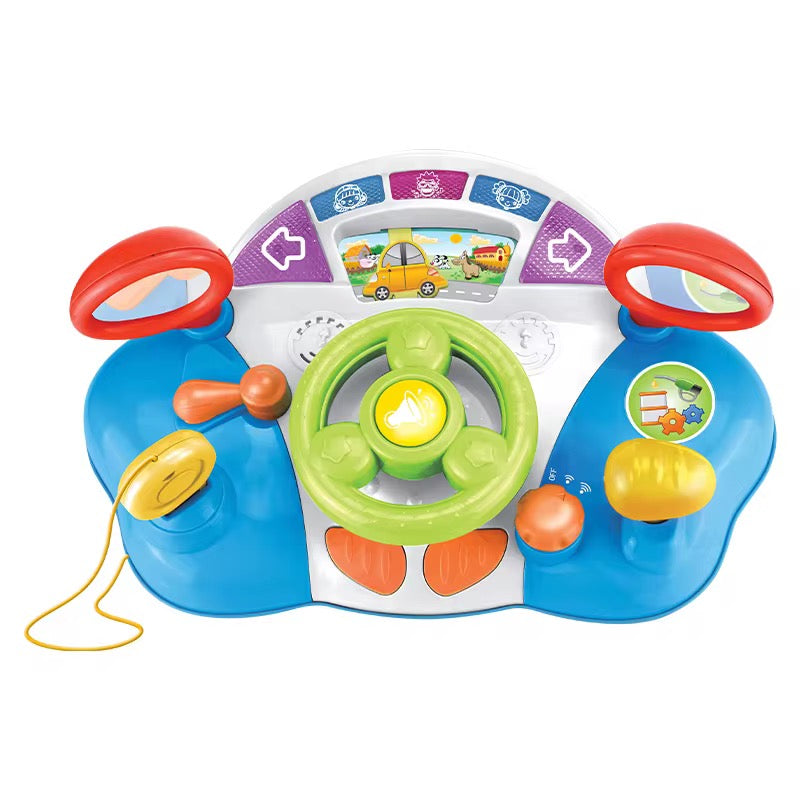 مقود ألعاب تفاعلي مليان أزرار وأصوات وألوان تخلي الطفل يعيش دور “السائق الصغير” وهو جالس بأمان.