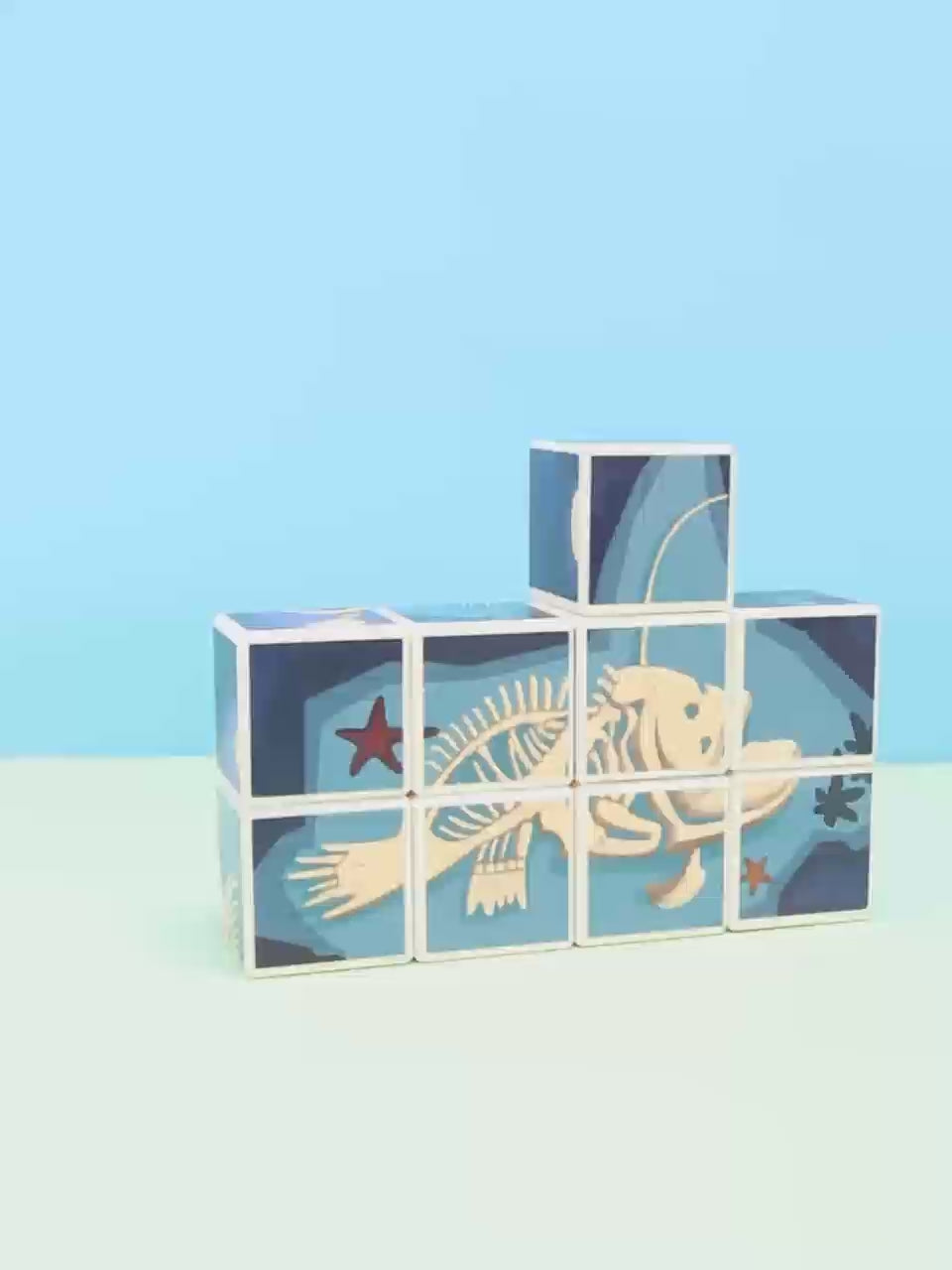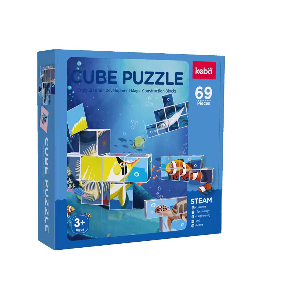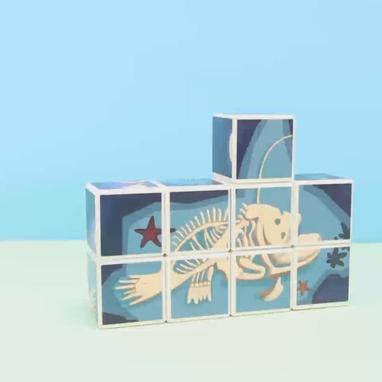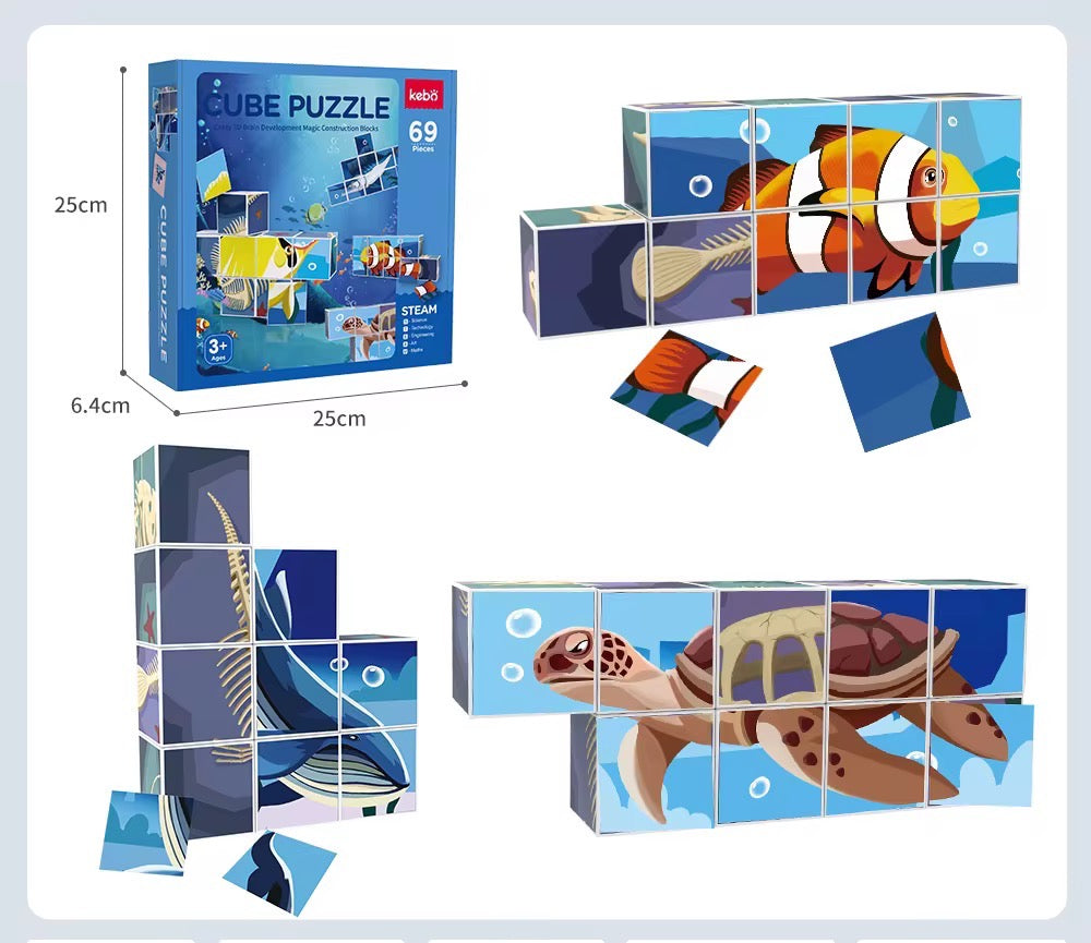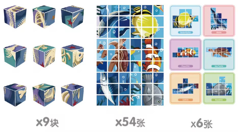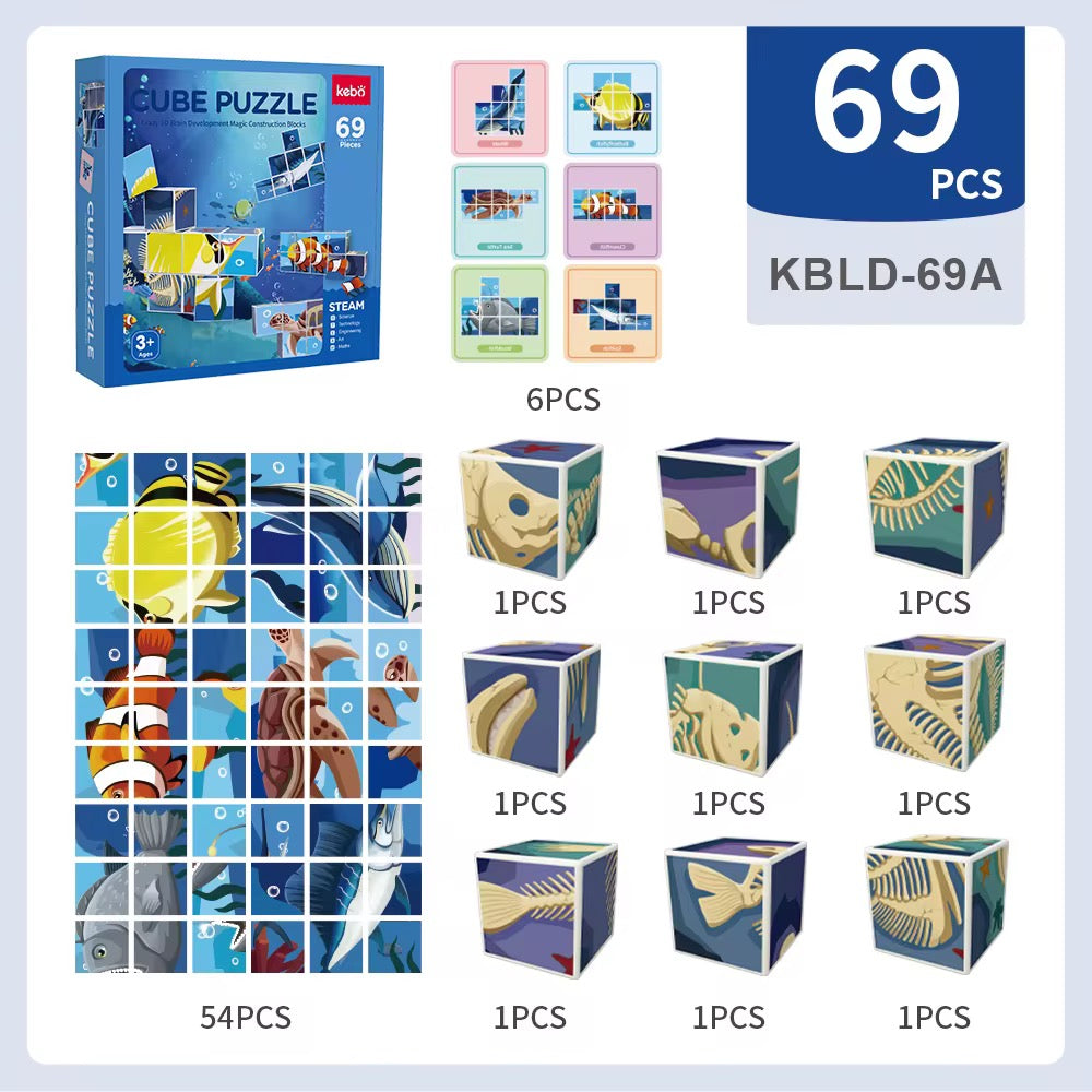 مجموعة مكعبات ممغنطة بأشكال كائنات بحرية مكوّنة من 69 قطعة تساعد الطفل يجمع الصور بسهولة من خلال المغناطيس، وتطوّر تركيزه بطريقة ممتعة وبسيطة.