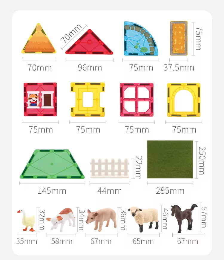مجموعة ممغنطة مع حيوانات تفتح للطفل عالم المزرعة والخيال. تساعده يبني، يرتّب، ويبتكر قصص ممتعة مع كل قطعة. مناسبة للّعب التخيّلي وتنمية مهارات التنسيق.