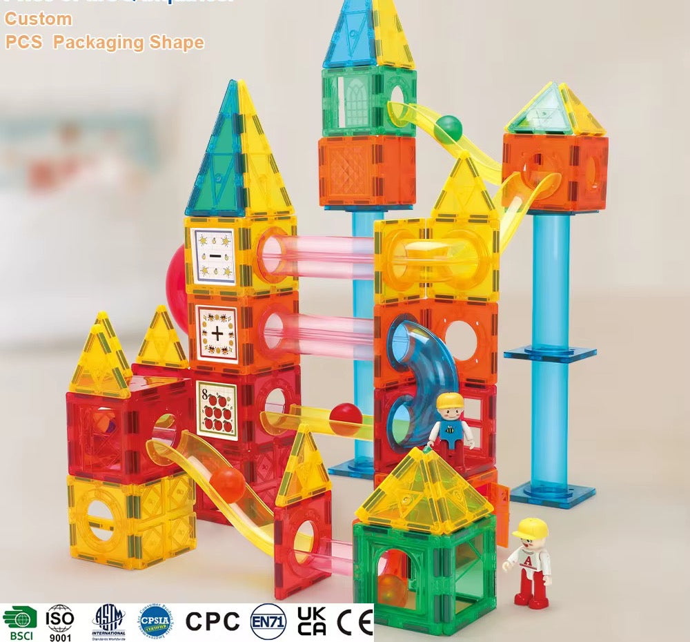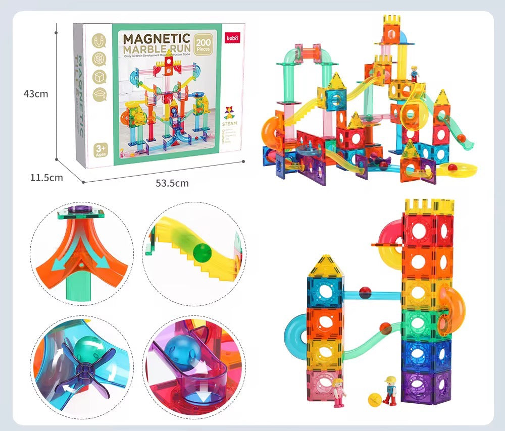 لعبة المسار المغناطسي تجي بـ200 قطعة تركب وتصنع مسارات مختلفة للكرات. تساعد الأطفال على الإبداع، التركيز، وفهم حركة الأشياء بطريقة ممتعة وتفاعلية.