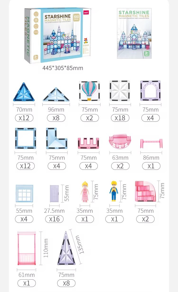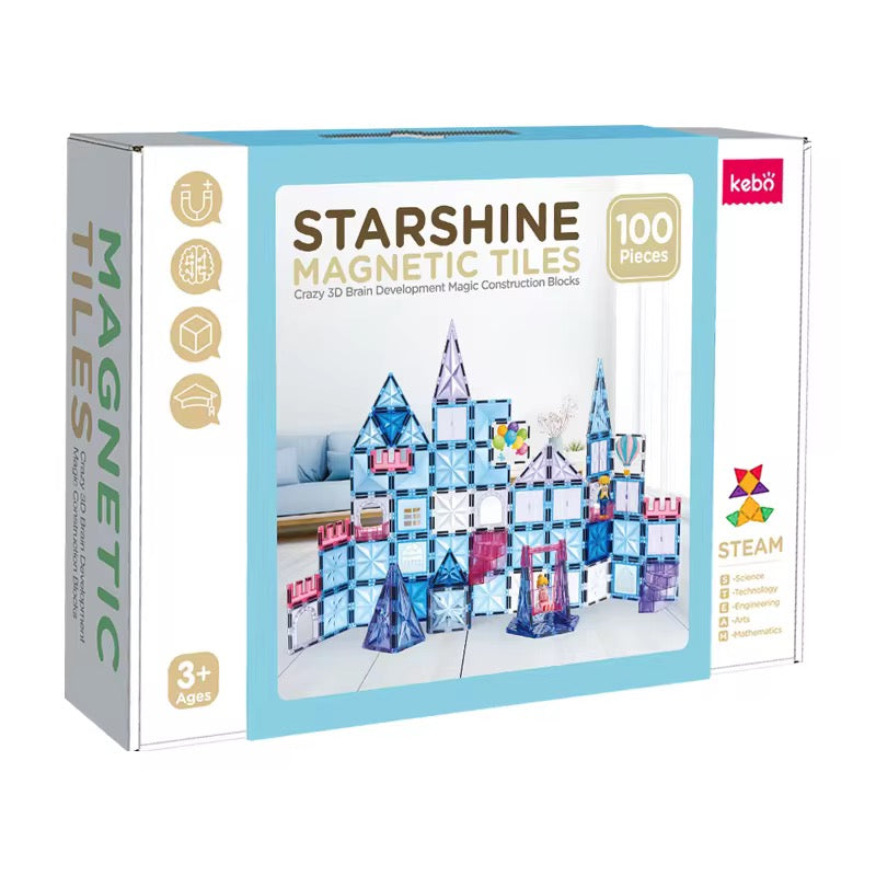 قطع ممغنطة نجمية تسمح للطفل بتجربة البناء الحر، تصميم القصور، الجسور، الأبراج، وكل فكرة تخطر في باله!