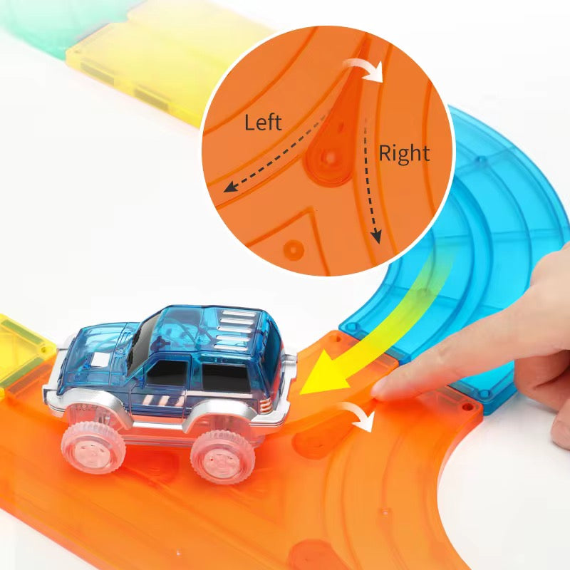 اللعبة عبارة عن مسار سيارات مغناطيسي يقدر الطفل يركّبه بطريقتين وثلاث وعشر!