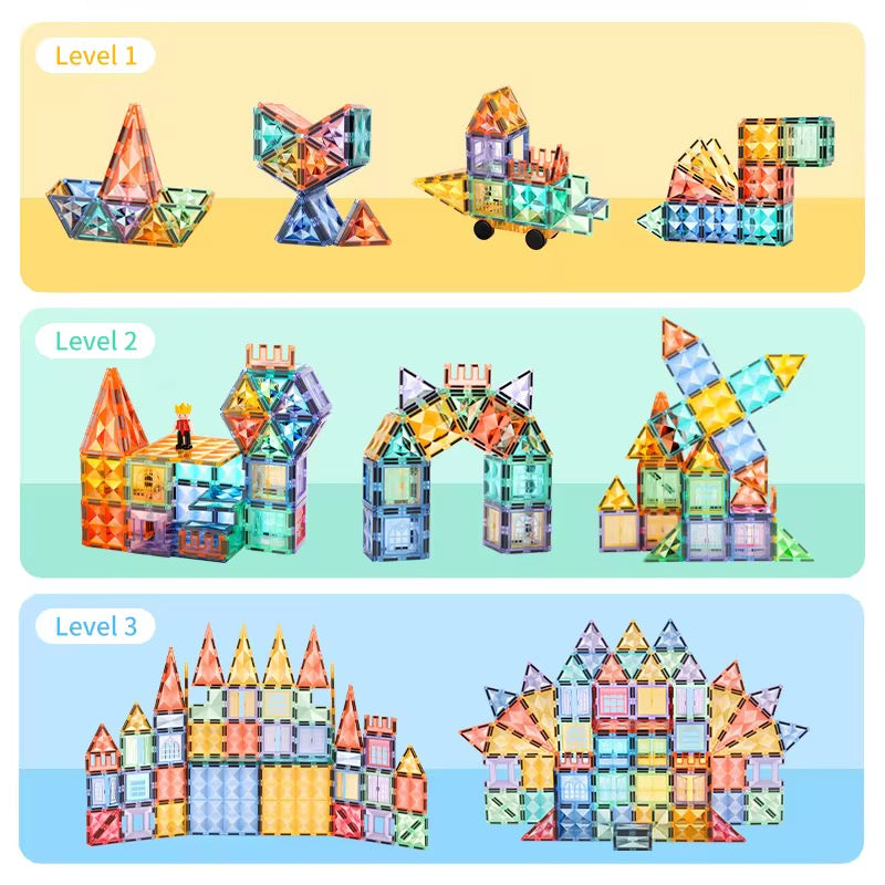مجموعة القطع الممغنطة اللامعة (130 قطعة) هي اللعبة المثالية لتنمية خيال طفلك وبناء مهاراته الحركية والإبداعية.