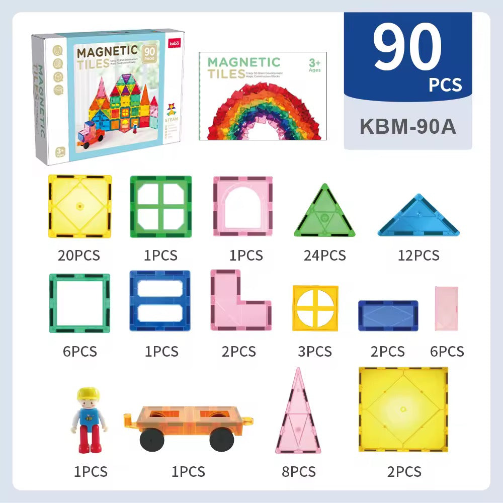 90 قطعة مغناطيسية لتصميم أبراج، بيوت، خيال بدون حدود!