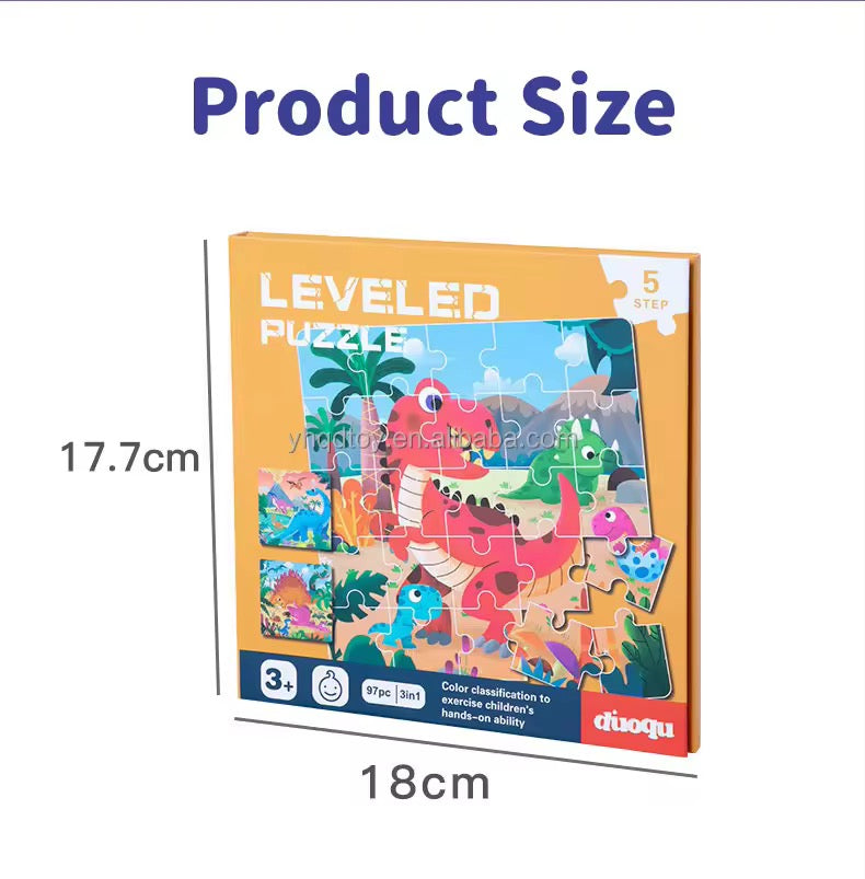 كتاب لعب ممتع، كل صفحة فيه عبارة عن بازل ممغنط بزيادة مراحل (Levels) تخلّي الطفل يتدرّج ويحس إنه قاعد يتطوّر.